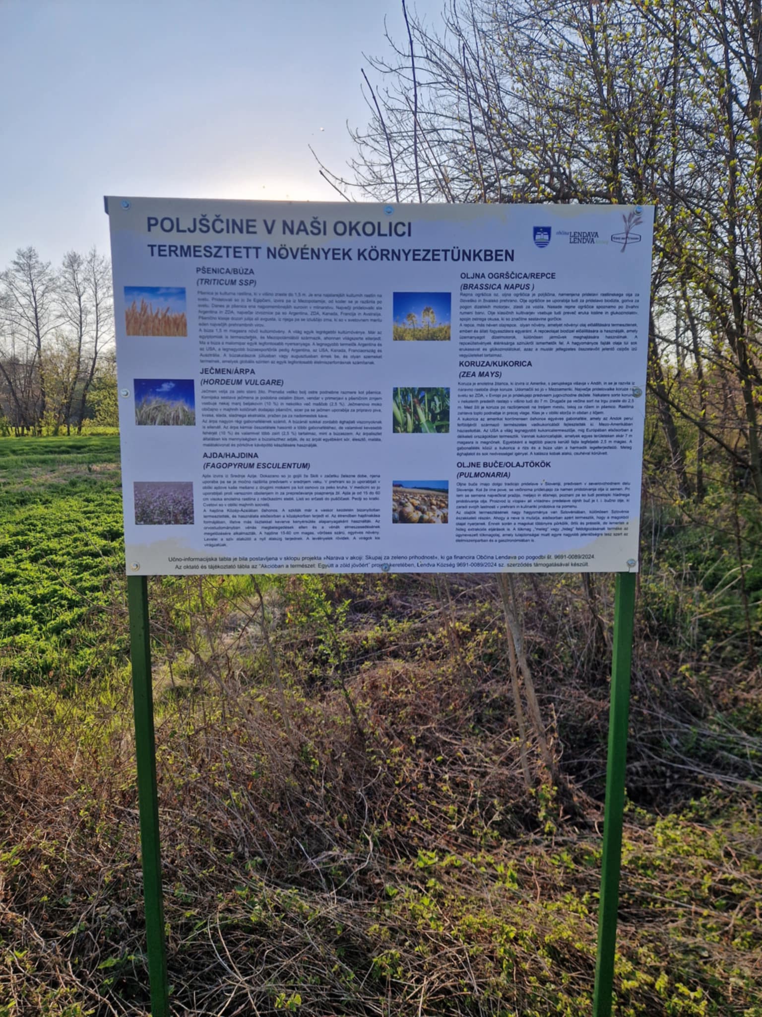Projekt poljske učne poti je omogočila Občina Lendava v sklopu projektov »Narava v akciji: Skupaj za zeleno prihodnost« ter »Raziskujem, se učim, zato da lahko zdravo živim«.